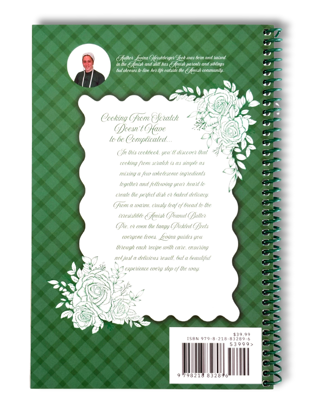 The book size is 6.5 inches wide by 9 inches high and .5 inch thick. It has a little over 230 recipes in it, all from my Amish childhood.